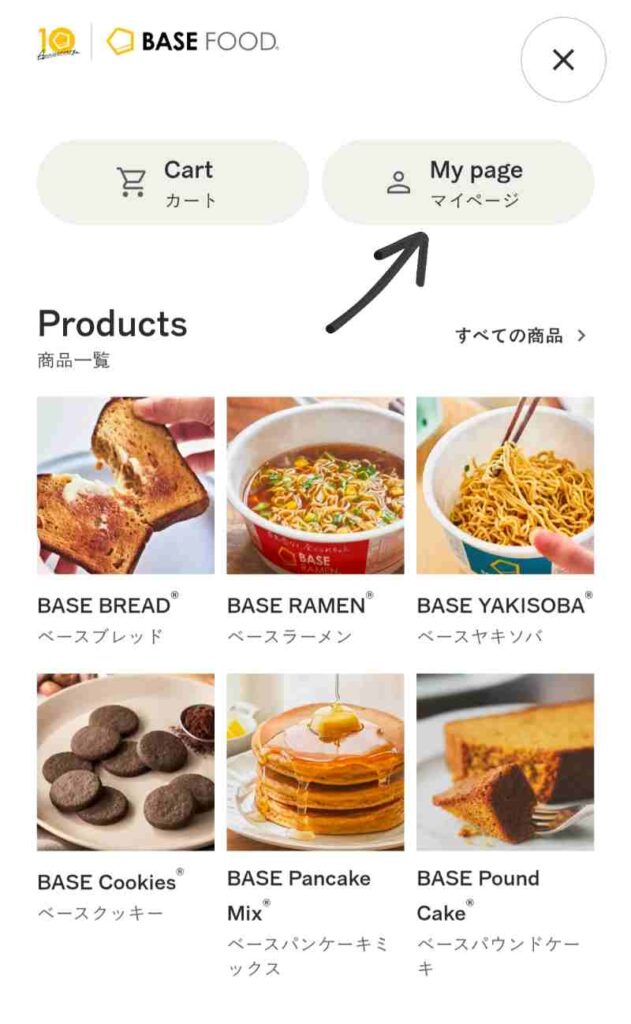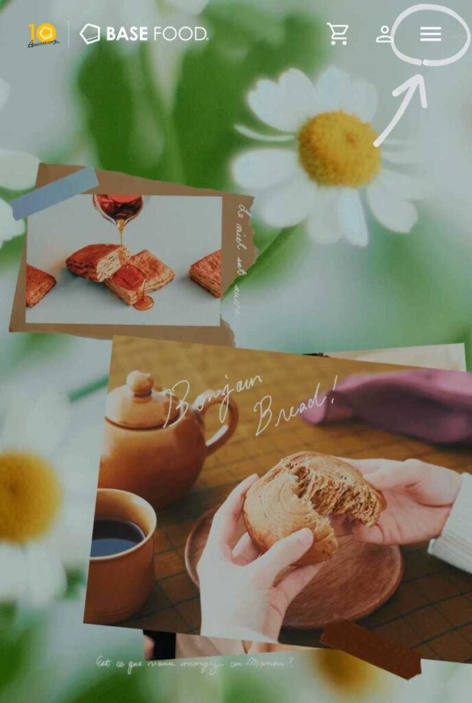 公式サイト(basebread.jp)にアクセスして、右上のメニューから「マイページ」へ。